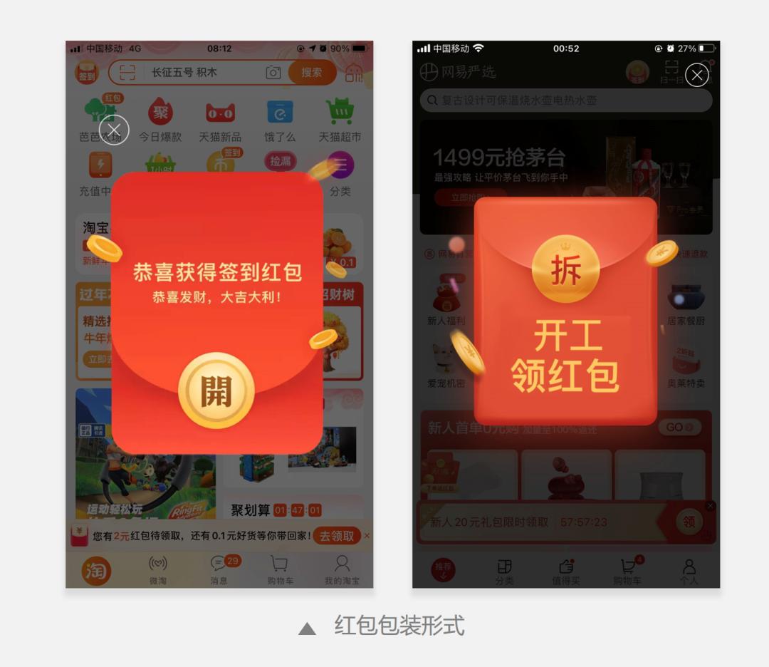 因此需要从视觉认知上做出转变。随着红包的兴起,越来越多的优惠券借用红包形式引起用户的兴趣。