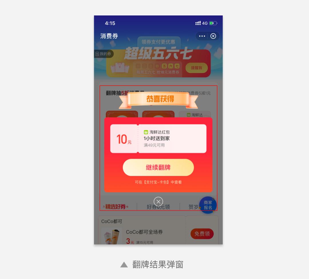 每次翻牌之后也会仔细查看结果,保证了优惠券信息的有效传达。