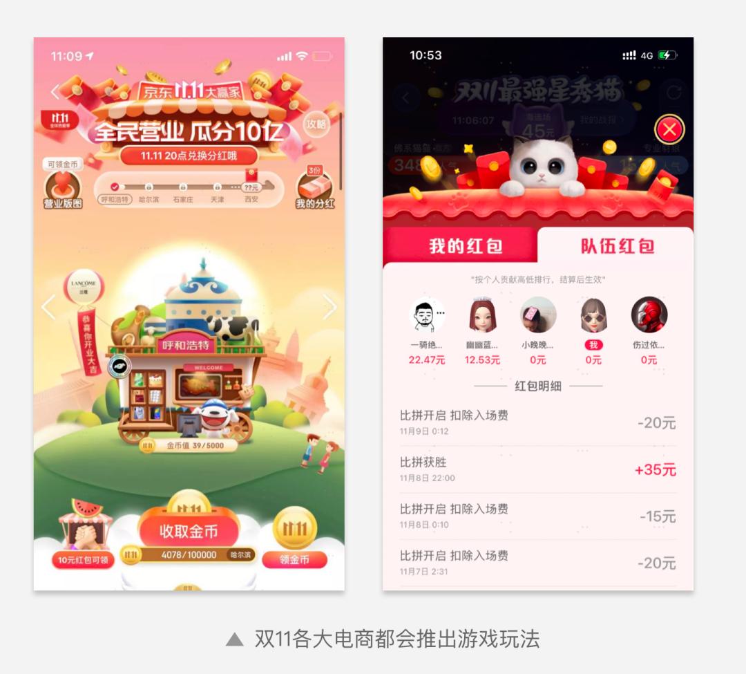而在双11大促场景下,各大电商平台都会推出游戏玩法,用户拼尽全力,与团队小伙伴一起努力赢得红包。