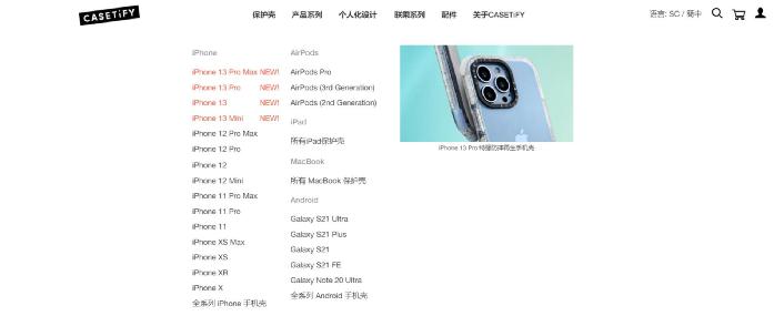 而在其主要的销售渠道——独立站上,手机壳也仅仅只有iPhone和三星Galaxy系列。
