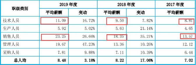 随着规模的增长,杰美特的销售人员平均薪酬增长幅度一度超过了技术人员,而杰美特也慢慢从“技术宅”过度成为一个销售型公司。