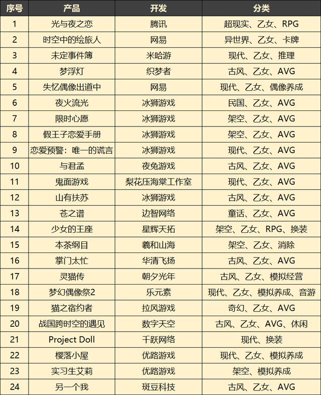 再回看整个游戏行业。据腾讯女性向游戏产品负责人朱加进表示,从2018年至今,我国加入女性向游戏赛道的厂商将近80家,促进了该行业的高速发展,也因此,有不少人将2018年称为“女性向游戏发展元年”。