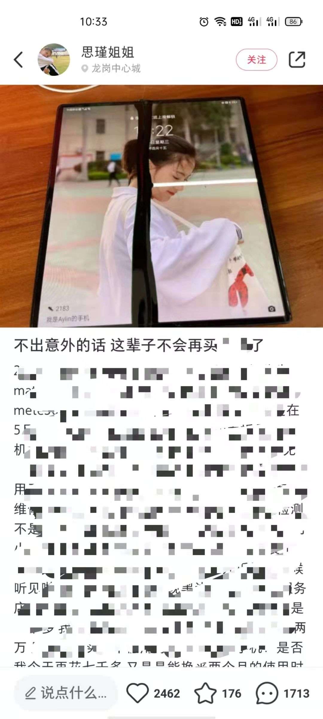 小红书上用户对某品牌折叠屏手机的吐槽