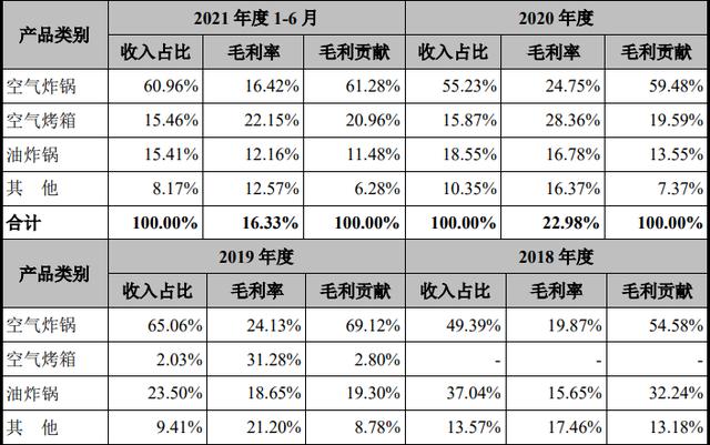 招股书显示,报告期内,比依股份核心产品空气炸锅的销售占主营业务收入的比例分别为 49.39%、65.06%、55.23%和 60.96%,已成为公司收入和利润的主要增长点。