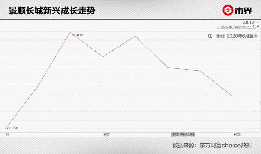 2020年6月末,景顺长城新兴成长份额共计76.7亿份,至2021年末时份额达到183.63亿份,增长139.41%。份额大幅增长,基金净值却在原地踏步。2022年2月10日,该基金净值2.492元,回到2020年7月初时的净值水平,期间买入并持有至今的基民绝大部分处于浮亏状态中。