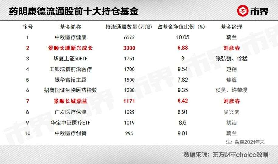 虎年第一周(2月7日—2月11日),药明康德大跌20.73%,持股该公司的基金损失惨重。截至2021年末,在众多基金中, 刘彦春管理的景顺长城新兴成长以3000万流通股的持仓位列第二,当前持仓市值为34.92亿元,仅次于葛兰的中欧医疗健康基金。