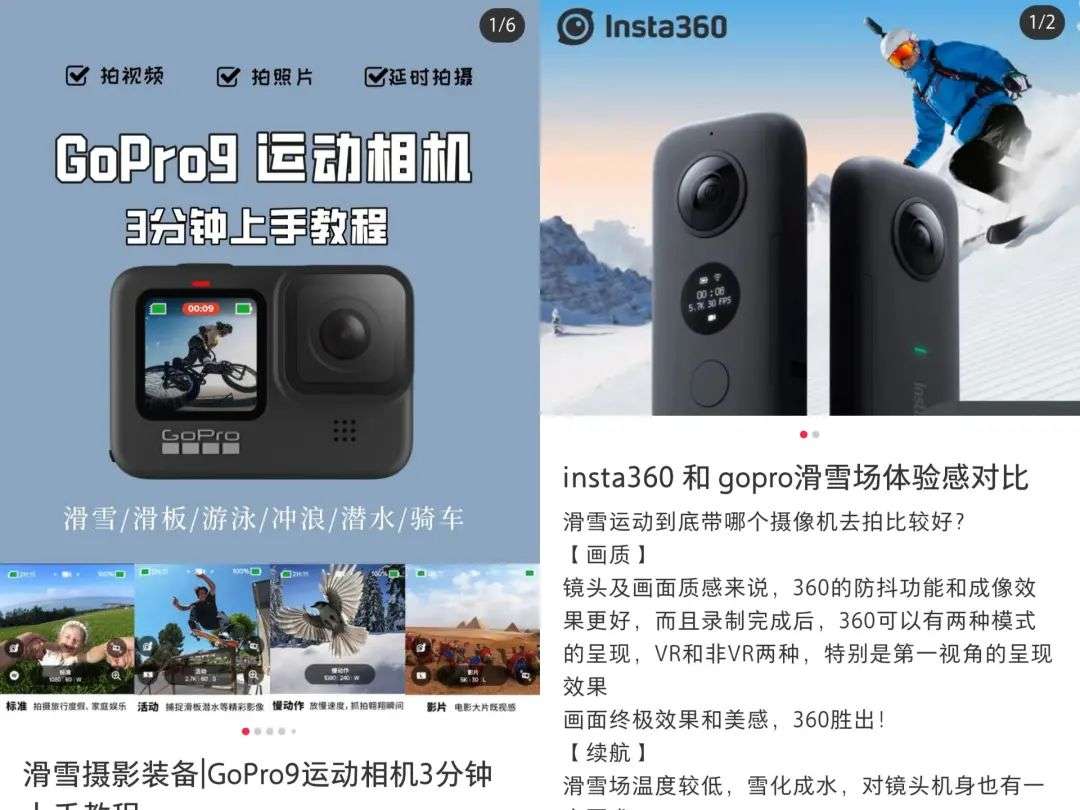 小红书上关于滑雪摄影装备的帖子