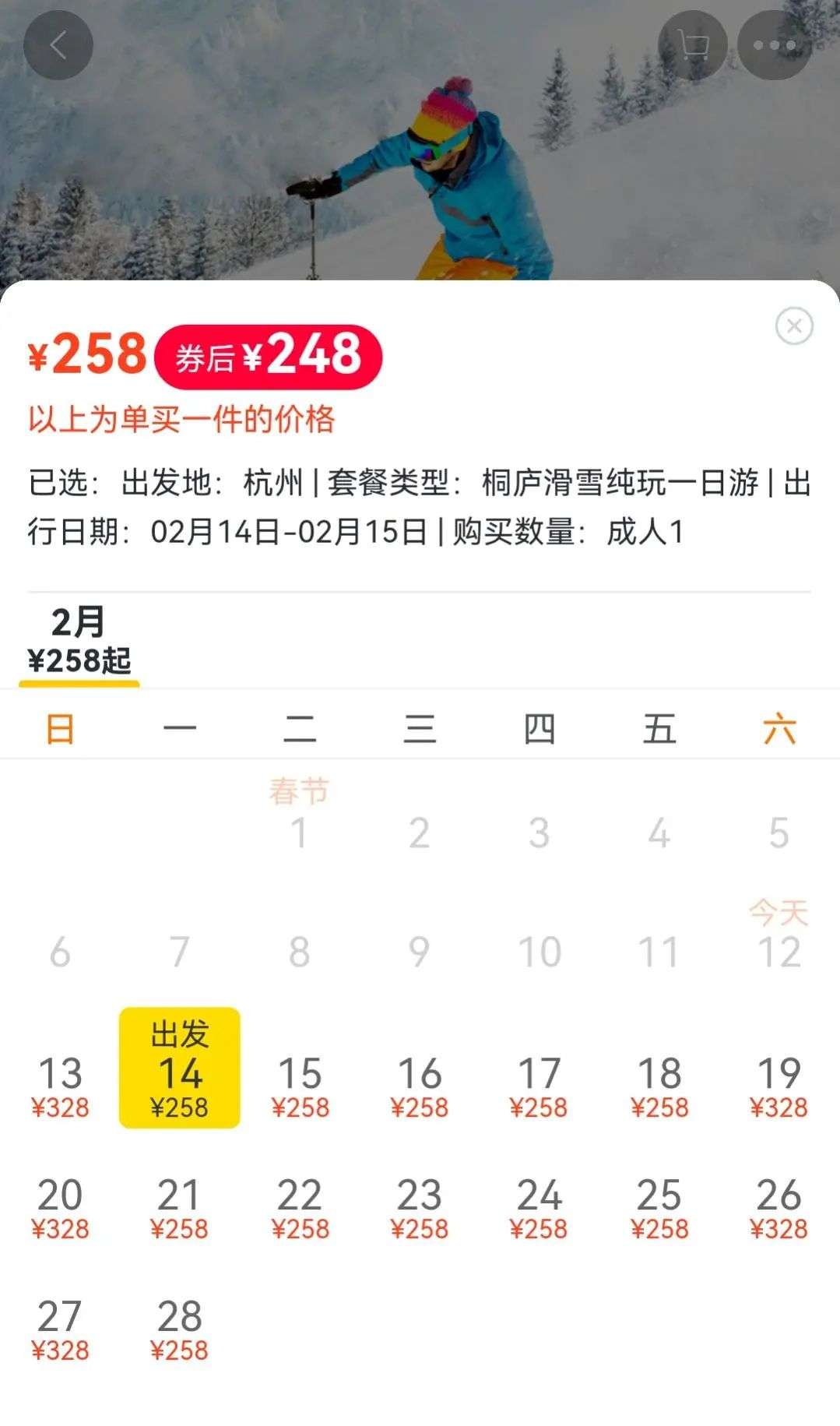 杭州工作的婷婷在看了冬奥会比赛后和朋友计划起了滑雪,作为“萌新”的她准备了1000元预算,但在朋友的建议下选择了参团,只花了258元在桐庐升仙里国际滑雪场体验了一天滑雪:“不用自己操心,也不用带什么,虽然出发比较早,但一上大巴就能睡觉休息,到了雪场也会有领队带着,不用担心不认路。”