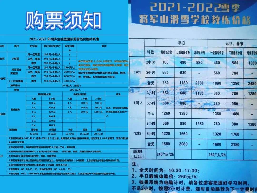 部分滑雪场的教练费用会公示