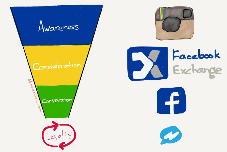 在那篇文章里,我描绘了传统营销漏斗的理想化图景,并且还对照了谷歌和 Facebook 的广告产品在里面的相应位置: