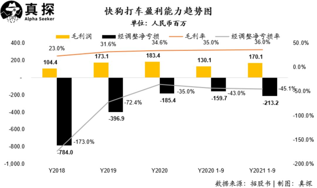根据招股书显示,快狗打车在2018年、2019年、2020年及2021年前9个月经调整净亏损分别为7.84亿、3.97亿1.85亿以及2.13亿元,报告期累计亏损接近15.8亿。