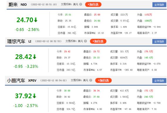 资本市场现在也表达了对蔚来、理想和小鹏的信任,和FF股价不断下跌不同。截至2月12日,蔚来股价24.69美元,总市值392.9亿美元;理想股价为28.42美元,总市值为293.5亿美元;小鹏股价为37.92美元,总市值为324.7亿美元。