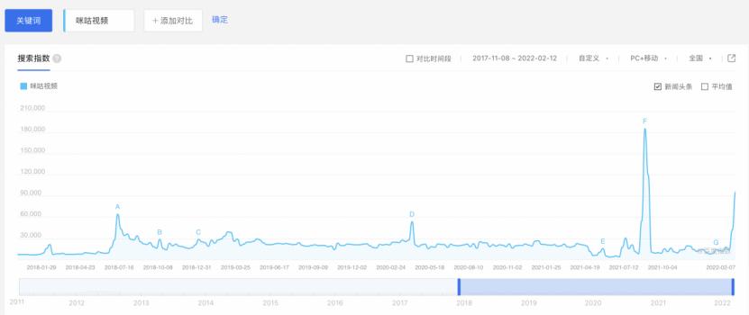 另外,通过赛事吸引来流量,但如何留存和消化这些流量也是一个问题。如果没有优质内容承接住赛事流量,平台流量将难以避免大起大落。从百度指数可以看到,每逢大赛,咪咕视频的关注度都会陡然上升,赛事结束后,流量又会骤降,始终无法把赛事流量转化为稳定的日活流量。