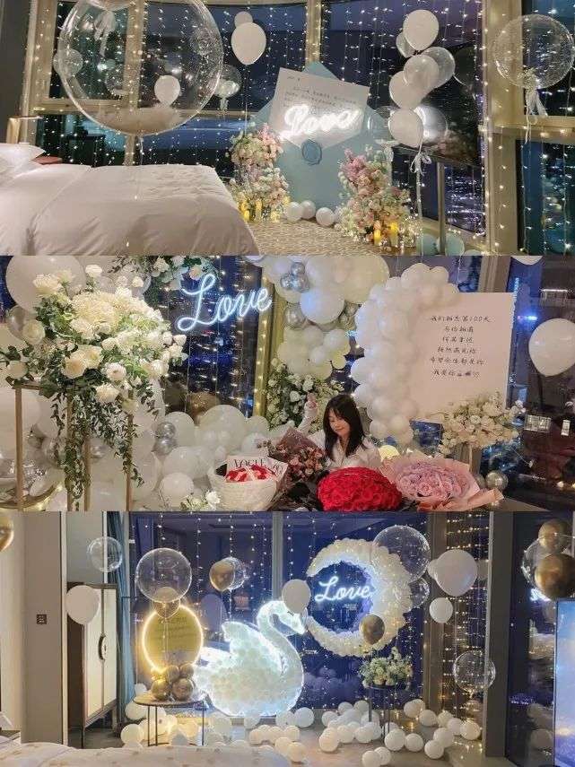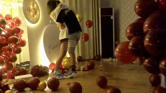 准备和女友求婚的00后小颜,也选择了花3500元请人在酒店房间里做以气球为主的场景布置。地点选在了广州天河一家五星级酒店的高层房间,大大的落地窗望出去是繁华热闹的城市夜景。
