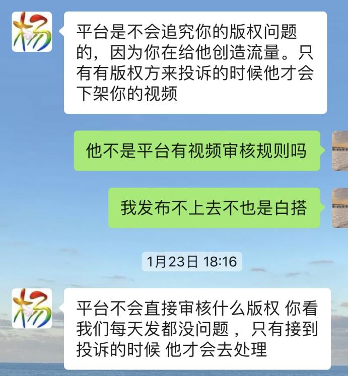当问到《细则》对影视剪辑有无影响时,该博主则称: “我们一直都在做,没把那个协会当回事。而短视频平台是不会追究版权问题的,因为你在给他创造流量,只有版权方来投诉的时候平台才会下架你的视频。”