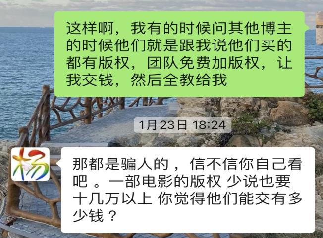 对于有些博主声称自己有版权的问题,一夕守候很肯定地回答道:“那都是骗人的,一部电影的版权少说也得十几万以上,你觉得他们能交多少钱?”