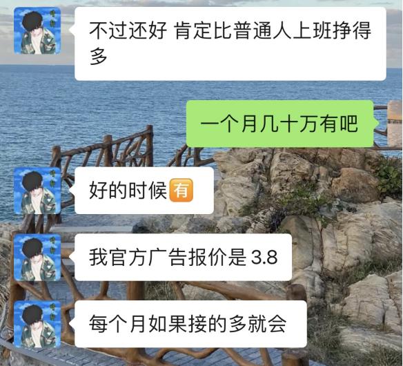 除了教学,还有广告收入。一位粉丝将近600万的博主告诉锌财经,其一条广告的官方报价为3.8万,好的时候光靠广告一个月就能挣个几十万。
