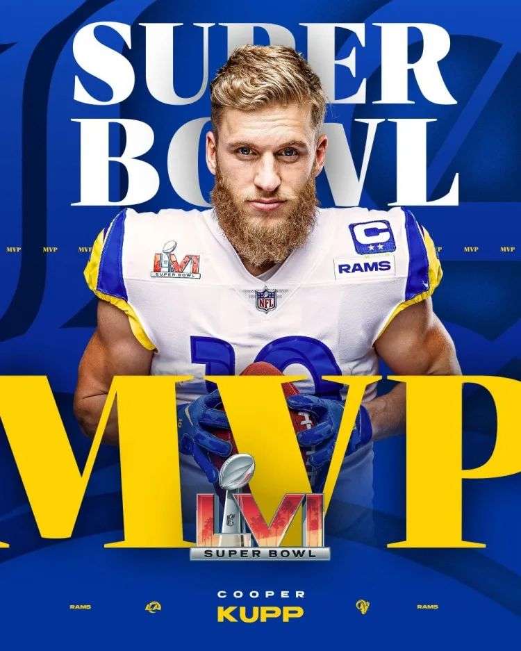赛后,本场比赛完成8次接球推进99码并实现2次接球达阵的公羊外接手卡普荣膺本届超级碗MVP。常规赛期间接球次数(145次)、接球码数(1947码)和接球达阵(16个)均排名联盟第一的卡普也成为了NFL历史第5位完成接球三冠王(3项接球数据均领跑联盟)的球员。