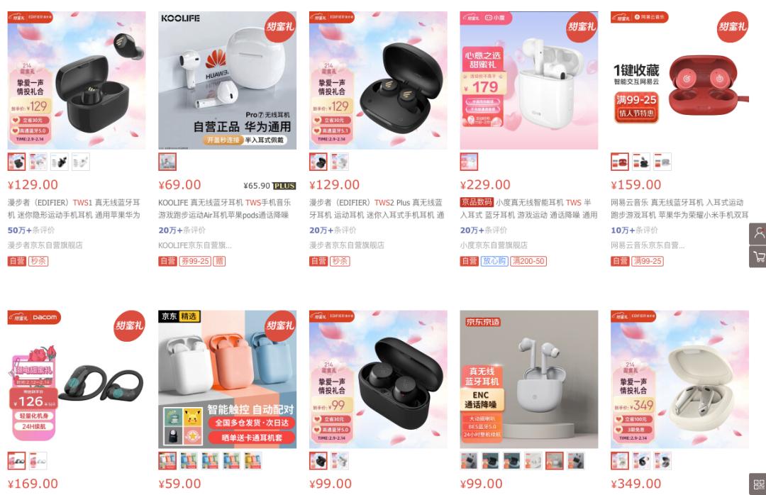 看到这里,你可能会觉得“既然高价耳机买的不好,那性价比优先或价格优先的芯片供应商的盈利能力一定很高”,而事实并非如此。刚才我们说过有不少TWS产品的购买发生在200元左右的价位,但如果我们在电商平台上搜索这个价位的TWS产品,不难发现这个价位市场竞争比任何价位都要激烈。尤其是百元以下的耳机,出厂批发价甚至已经低至10元。