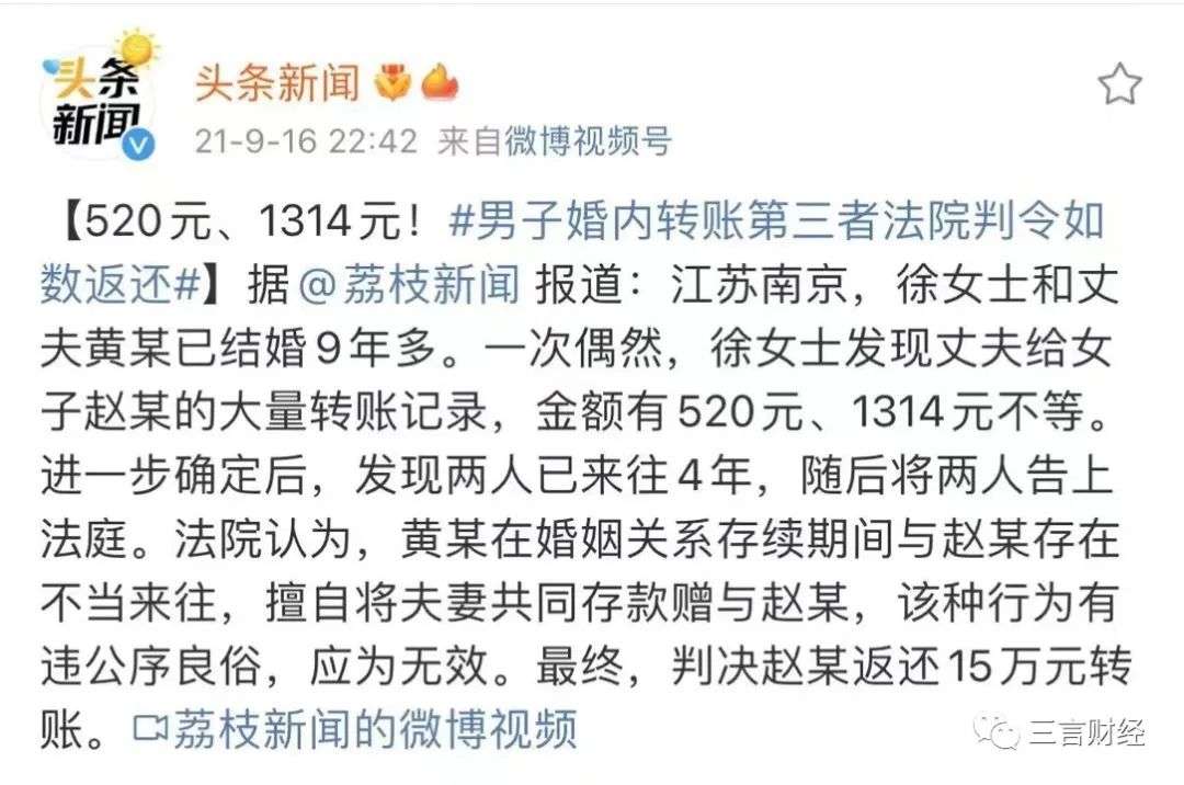 不过也有一种特殊情况,如果是男人婚内转账给第三者发红包,该部分红包会被认为是夫妻共同财产,有案例是最终要回来的。