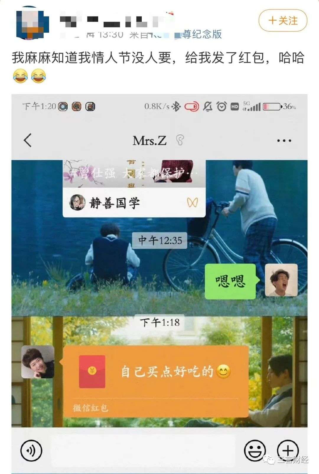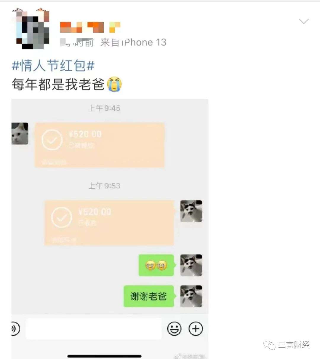 在微博刷了大半天的情人节红包,很大一部分并不是情侣之间的,却是爸妈发给女儿们的。