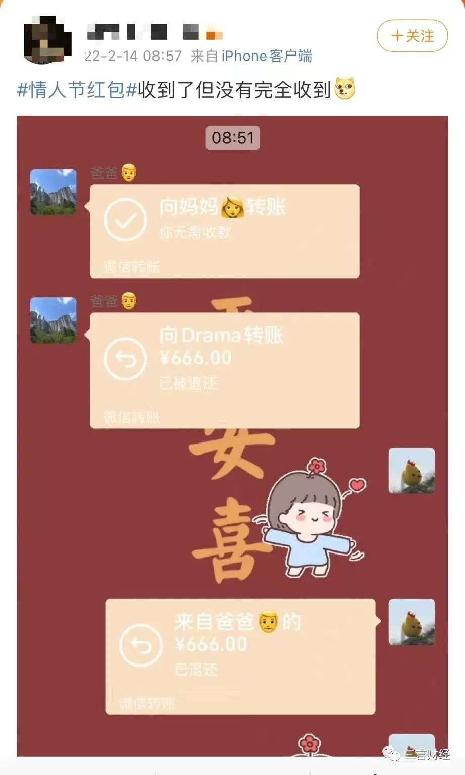 但有人尽管不是单身,奈何对象不开窍,没有领悟到情人节送红包的真谛。