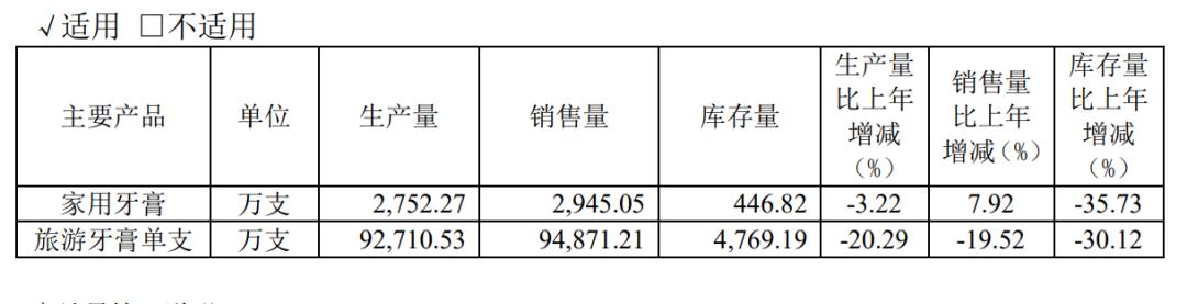 据公开数据显示,2020年,两面针总共卖出95462.8万支牙膏,其中家用牙膏2752.27万支、旅游牙膏92710.53万支。