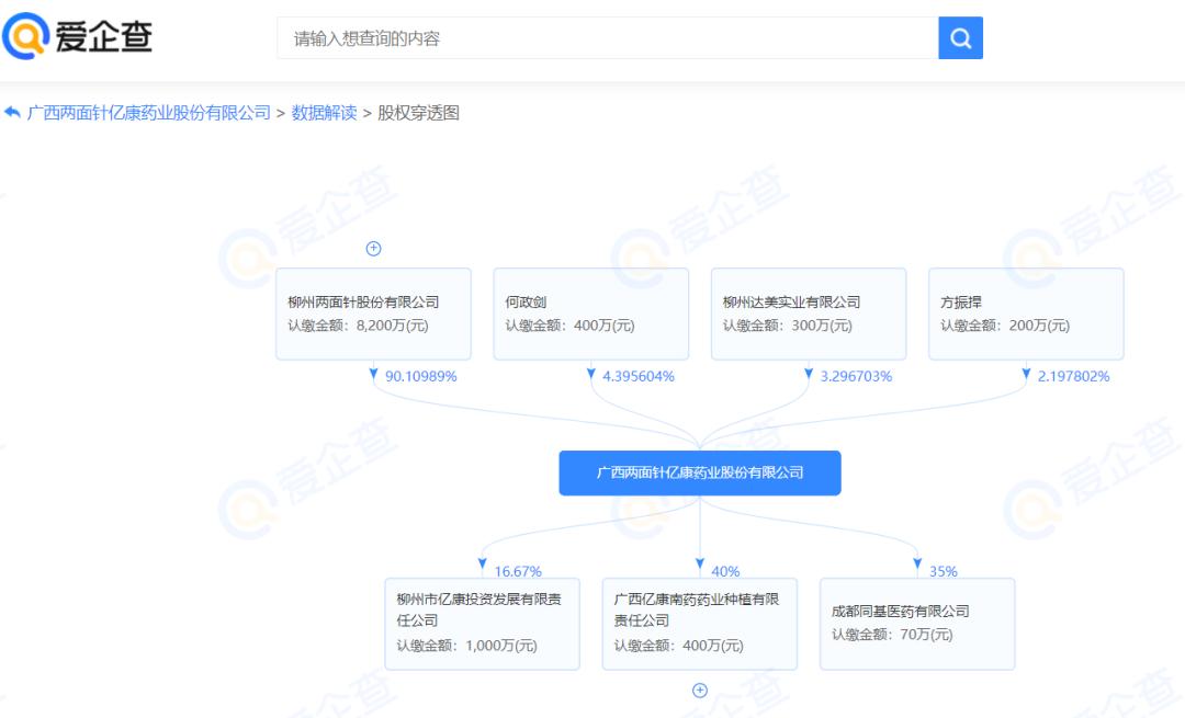 据爱企查数据显示,两面针仍保留了医药业务,持有亿康药业超90%的股权。