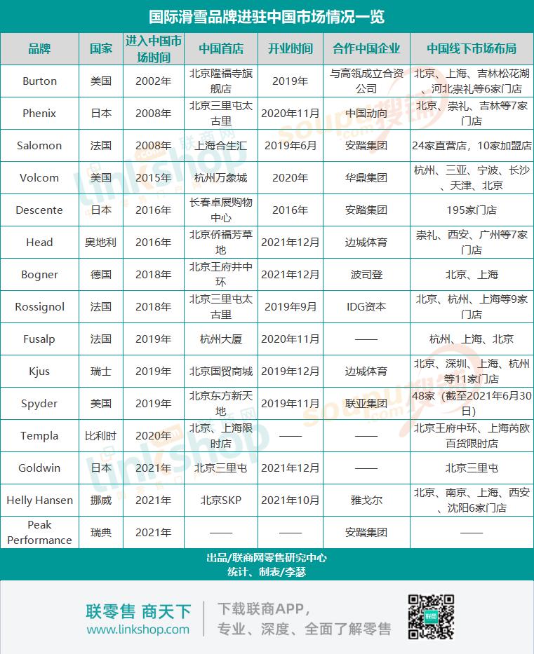 《联商网》统计发现,2015年北京申办冬奥会成功后,中国市场迎来了大批国际滑雪品牌。