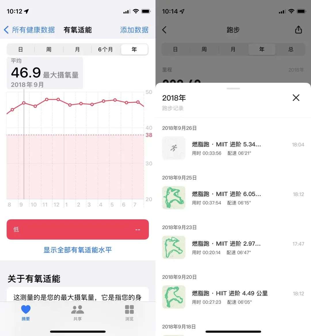 譬如近期,我的有氧适能数值稳定在 37 左右,低于平均,但当我将图表往回拉,发现在 2018 年底至 2019 年底近一年时间里,我这项数据都在 47 左右,而那段时间我坚持着每天慢跑 5-10 公里的习惯,如今回想起来,那年我的身体素质和精神面貌都比现在要好不少,看来是时候捡起夜跑这个习惯了。