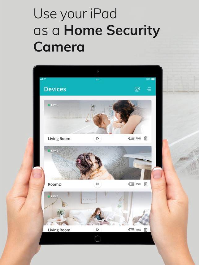 你只需要在你的iPhone和iPad上安装这些应用程序中的任何一个,然后iPad就会开始记录周围的环境,你可以在世界任何地方从iPhone上的配套应用程序中观看实时监控画面。