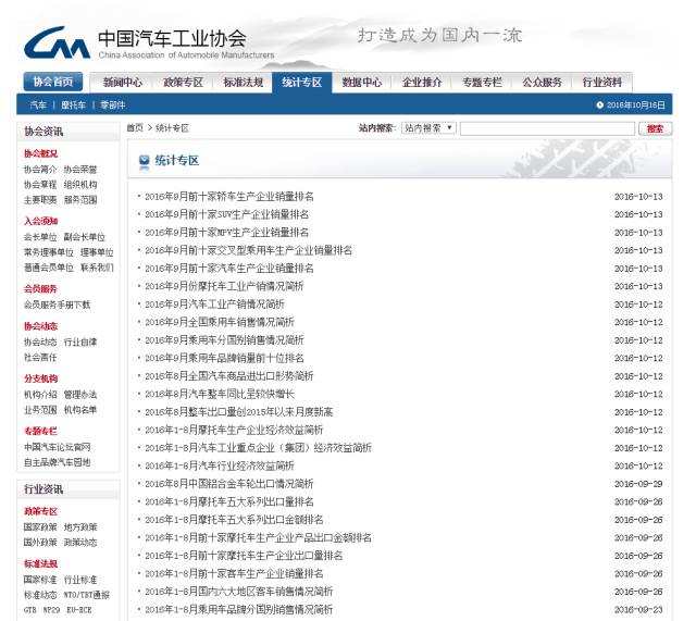 再比如在汽车行业领域,中国汽车工业协会网站也会有非常详实的统计数据,帮助你了解这个行业的大致情况。