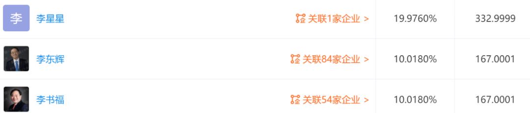 李书福大名鼎鼎;李星星是李书福的儿子,1985年出生;李东辉现为吉利控股集团CEO。