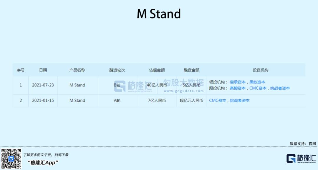 M Stand成立于2017年,同样来自上海,2021年进行了两轮融资,启承资本、黒蚁资本、高榕资本、CMC资本、挑战者资本等参与,最新估值达40亿人民币。