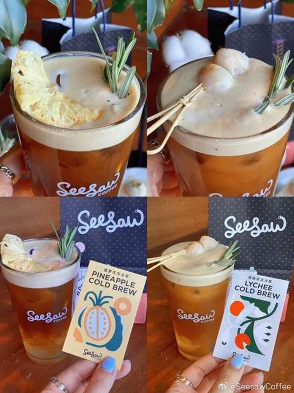 最后是Seesaw,这家成立于2012年的品牌主打创意咖啡,以咖啡为基底进行混搭去吸引消费者,这一打法目前是奏效的,公开数据显示,2021年5月其创意咖啡的复购率达40%。