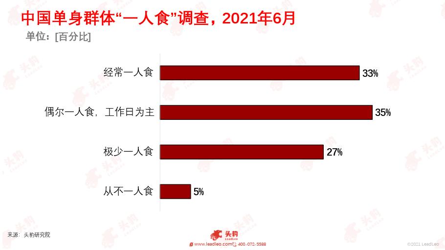 在中国单身经济发展的大背景下,“一人食”逐渐成为单身群体用餐常态,其中占比33%的单身群体经常一人用餐,而占比35%的单身群体偶尔会一人用餐,产品主打“一餐一盒”小份量的互联网辣椒酱毫无疑问是单身经济发展的受益者。