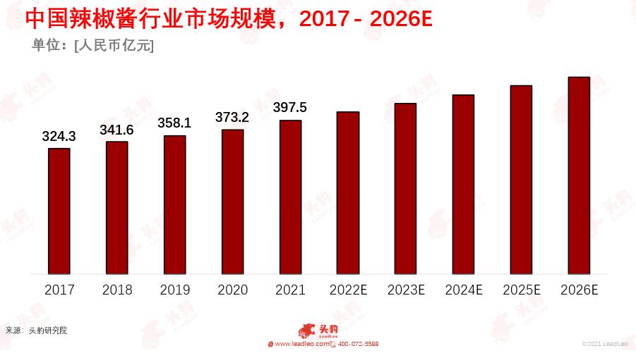 头豹研究院预测,中国辣椒酱行业的市场规模将于2022年达到419亿元。