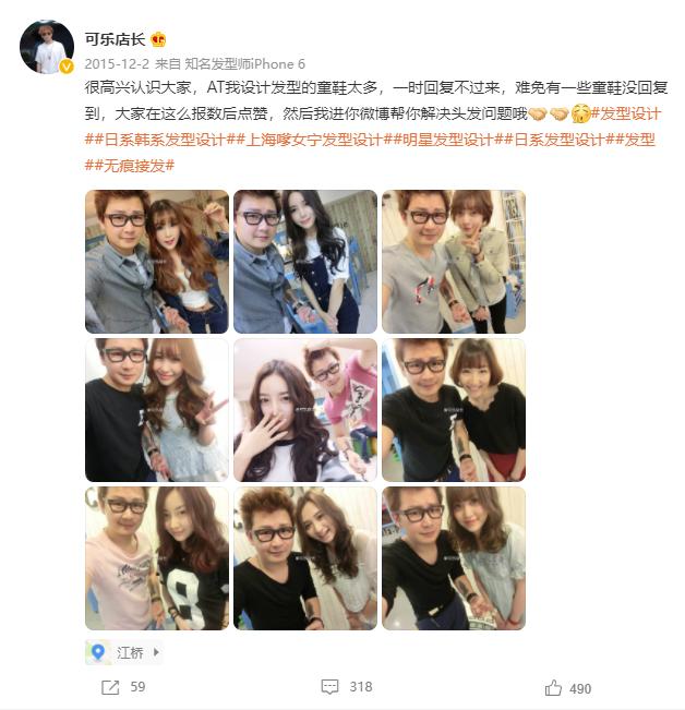 2015年,微博图文打得火热,“可乐店长”不定期在微博更新他与顾客的合照,分享剪烫染发的小技巧,给自己和所在理发店都积攒了一定人气,算是早期利用微博打广告的理发师之一。截至目前,“可乐店长”微博粉丝数达102万。