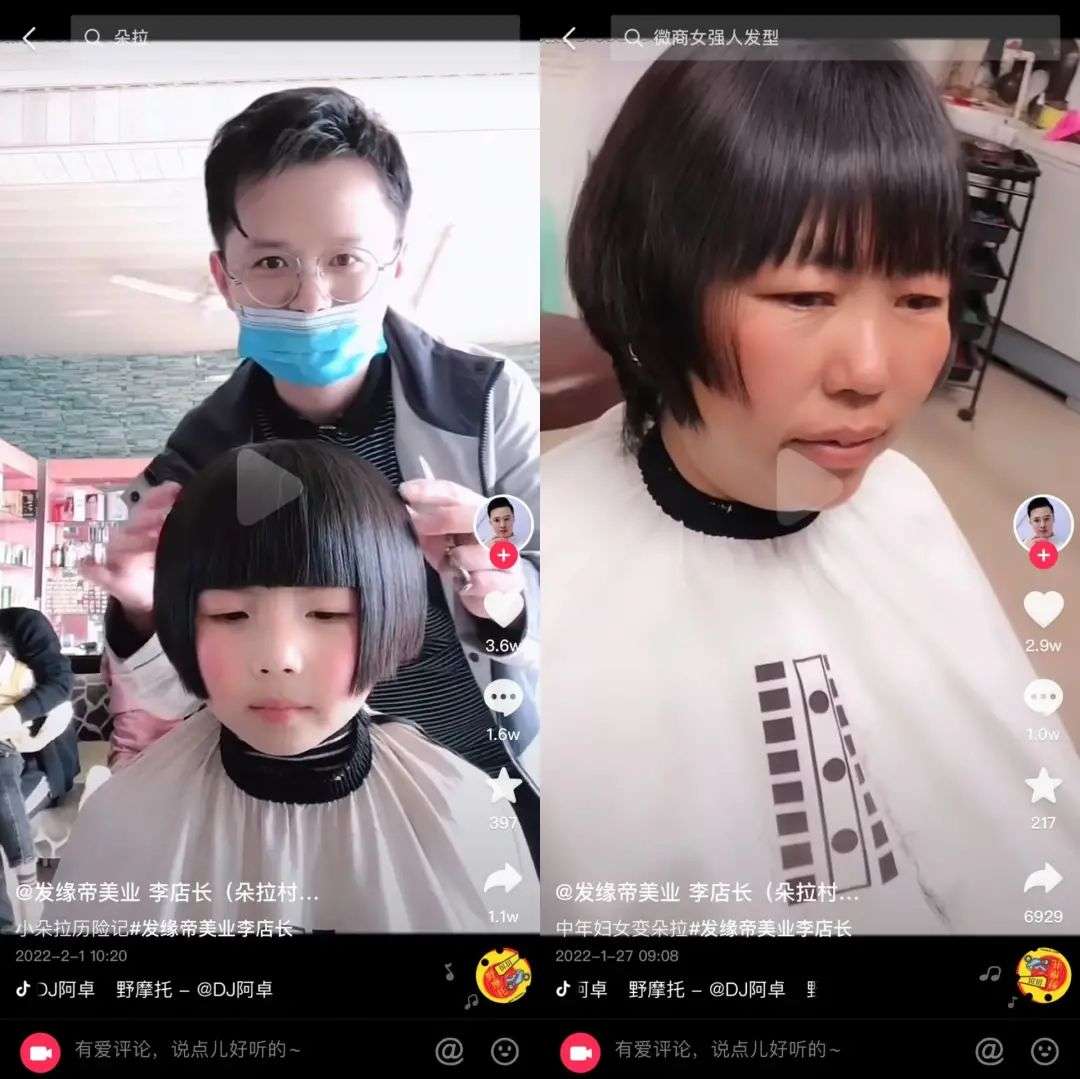 不管是面庞稚嫩的长发女学生,还是阅尽世事的中年阿姨们,只要坐上“李店长”的理发椅,统统逃不掉变成朵拉同款发型的命运。