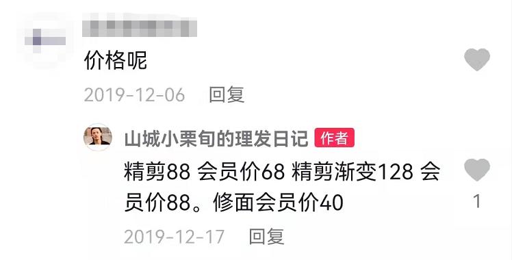 罗马不是一日建成的,“小栗旬”也并非一出手就是388元。在2019年的抖音视频评论区,他告诉顾客的最高精剪价是128元。
