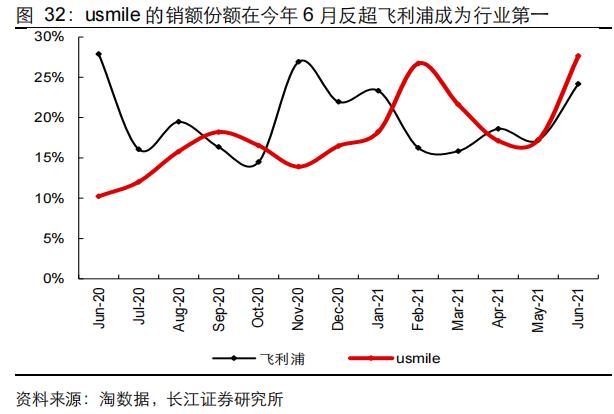 不过可以肯定的是,目前电动牙刷市场格局未定。一面是如飞利浦、欧乐 B 等海外高端品牌,在国内市场依旧享有品牌优势且产品力较强,另一面是如usmile等国内新兴品牌,正在积极抢占市场,如今正是打响品牌之争的激烈阶段。