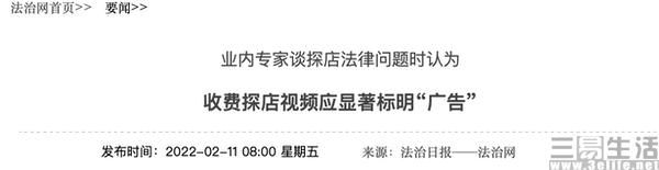 日前,《法治日报》在一篇相关报道中援引探店行业利益相关人士的消息显示,“探店这个圈子水特别深,有博主收了钱只说好的”,并且目前“已形成探店刷好评产业链”。围绕探店博主这一新兴行业,《法治日报》也采访了业内专家,而对于探店的法律方面相关问题指出,收费探店视频应显著标明“广告”。