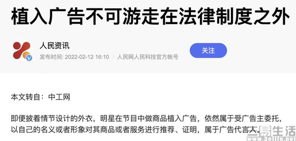而日前上海市市场监管局印发的《商业广告代言活动合规指引》中也已明确,含有商业植入广告的综艺节目中,参与的明星艺人、社会名人为植入的商品、服务进行推荐、证明,符合广告代言人的定义,应履行广告代言人的法律责任和义务。