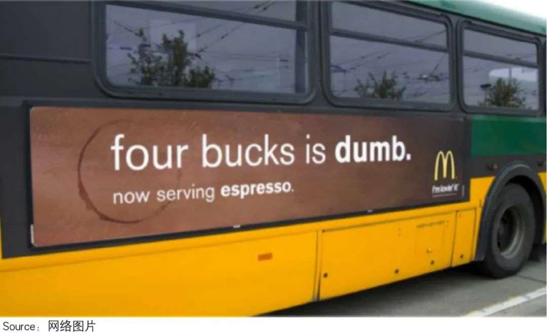 2008年底的一天,美国西雅图星巴克总部门口的电线杆上,突然出现了一块充满挑衅意味的广告牌。上面用大字写着“4美元是愚蠢的”,下面还有一行小字:“我们开始供应即磨咖啡。”
