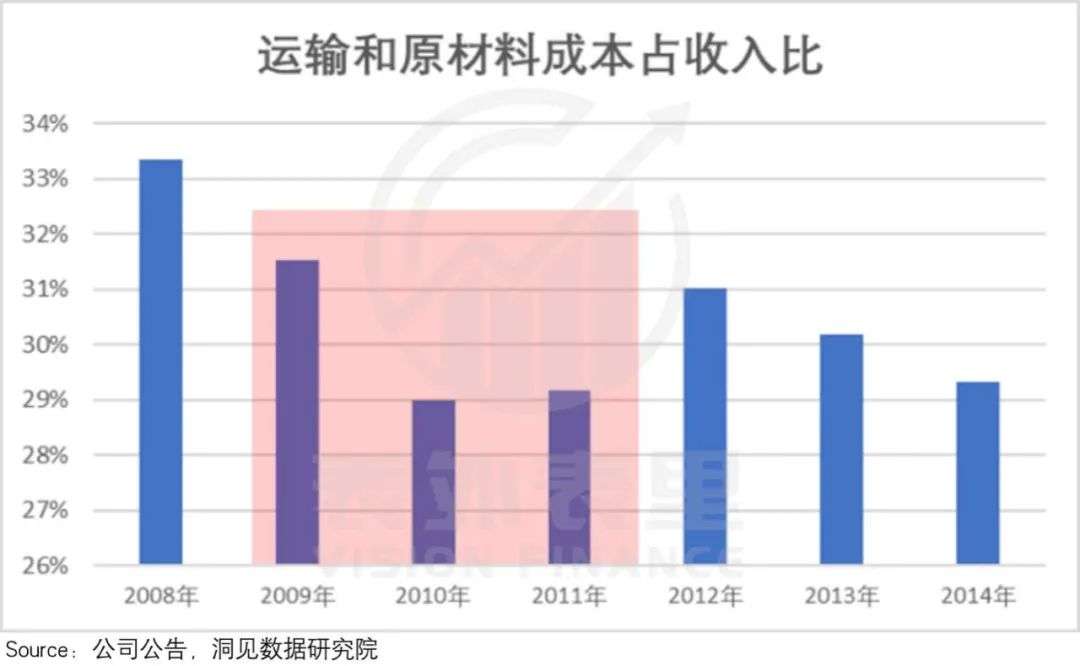 也就是说,销售额降低了,可供应链成本却在不断上升。