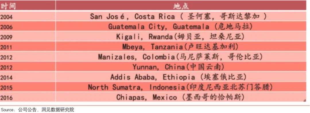 资料显示,星巴克在2004-2009年间,即拓展了咖啡豆种植基地。可以看到,在哥斯达黎加、危地马拉、塔桑尼亚三地种植中心的支撑下,该时期星巴克的原材料成本,并未受太大影响。