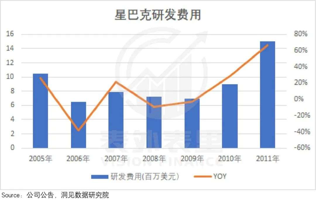 或许是教训过于惨痛,星巴克对产品力就此真正重视了起来。可以看到,其研发费用在2009年之后,持续大幅增加。
