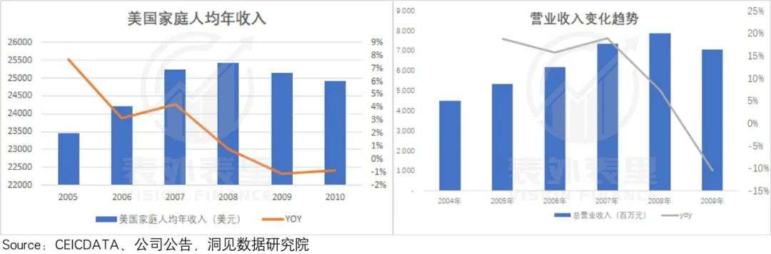 最典型的例证是当年美国家庭人均年收入开始下滑,而星巴克的营收增速也同期出现大幅下滑。
