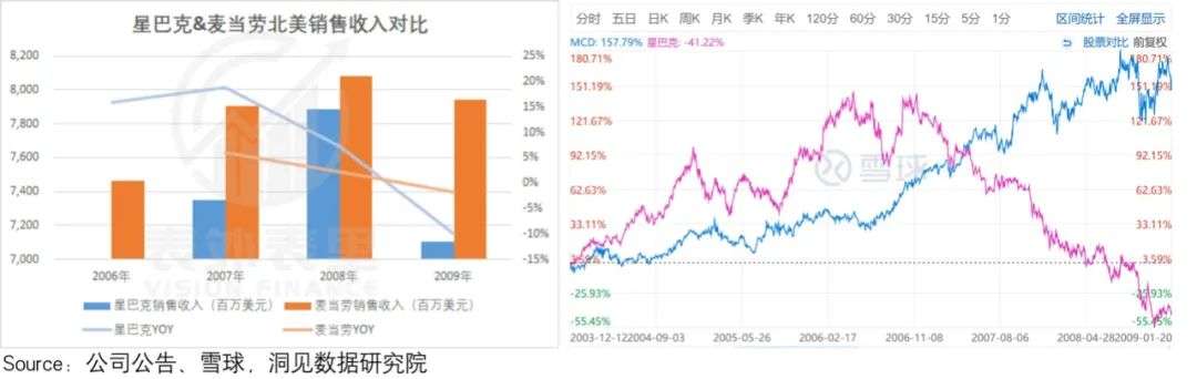 研究过行业同类型标的后,我们发现,星巴克在2008年就有类似的情况。