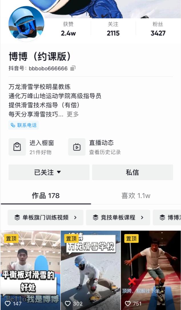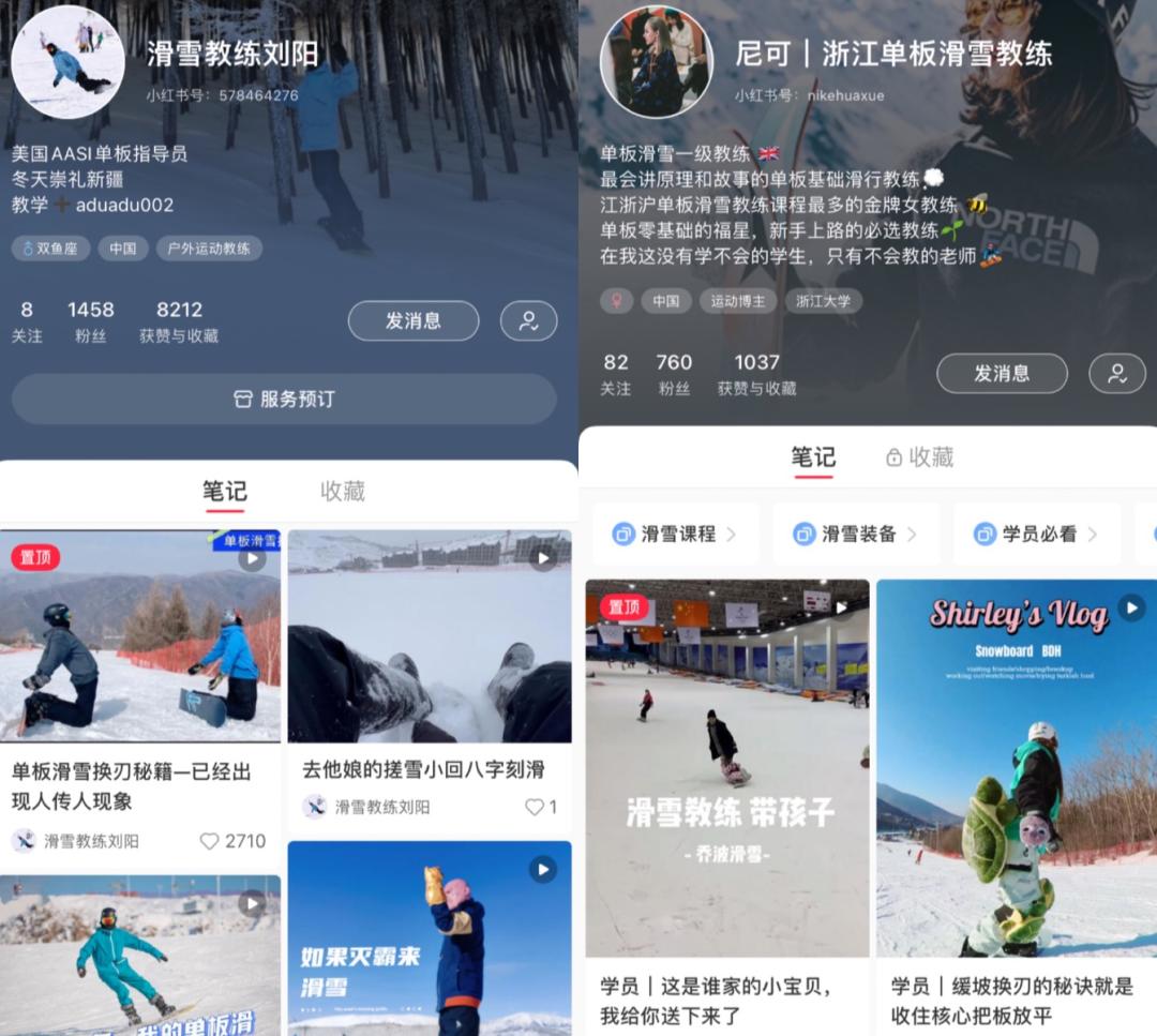 喜欢滑雪的年轻人越来越多,在他们喜欢的平台上开账号,不但可以展示自己,还可以给潜在的学员展示自己的实力,减少了前期磨合的成本,获得更多生源。